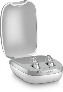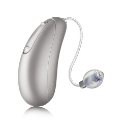 This style of behind the ear hearing aid is the most discrete style.called a Receiver-In-Canal or RIC hearing aid. It can fit a wide array of hearing loss and is available in both rechargeable and battery operated models.