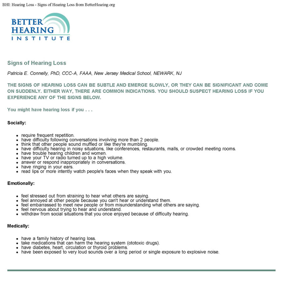ARTICLE COURTESY OF BETTER HEARING INSTITUTE