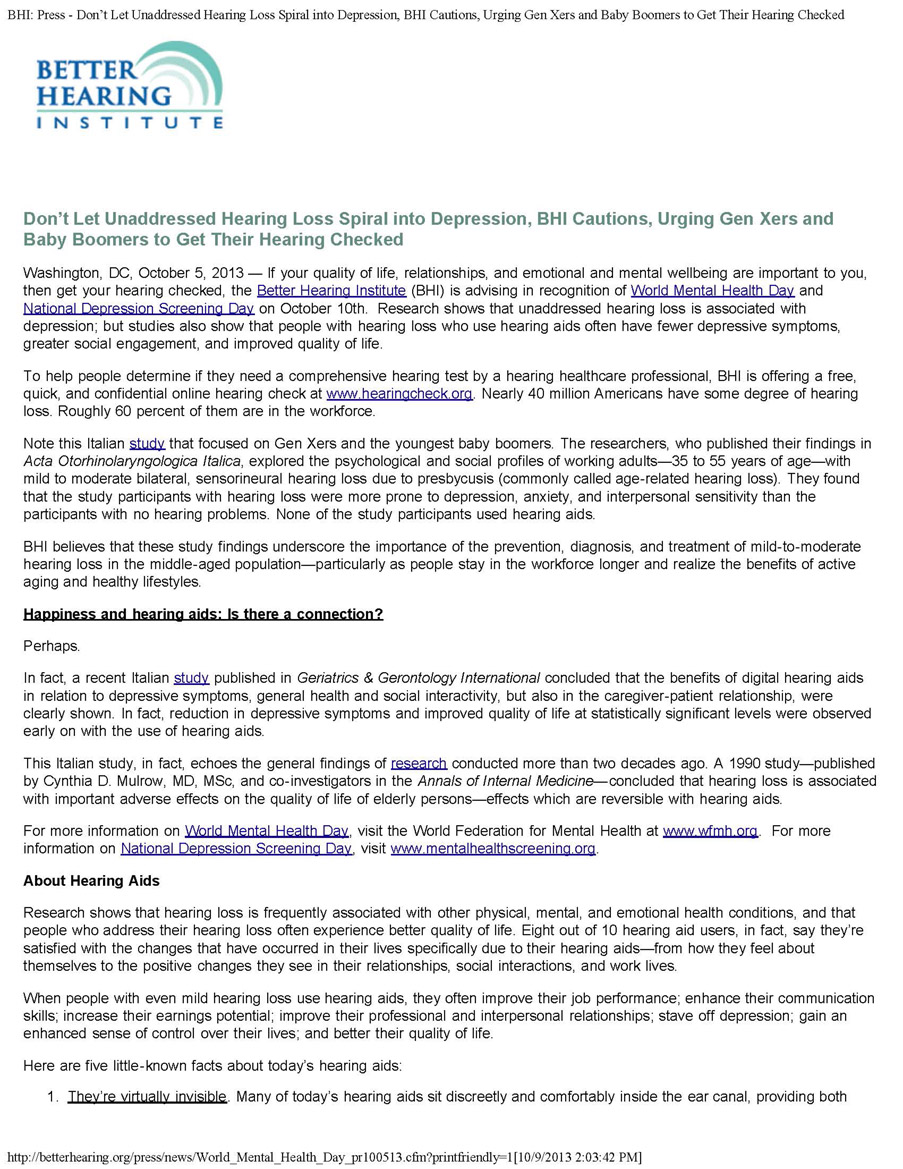 Unaddressed Hearing Loss and Depression