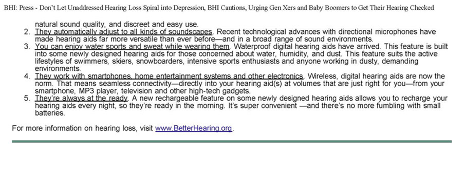 HEARING LOSS AFFECTS THE BRAIN - DO NOT PUT OFF GETTING HELP! AN EDUCATED, INFORMED CONSUMER YIELDS A SUCCESSFUL TREATMENT ARTICLE COURTESY OF BETTER HEARING INSTITUTE
