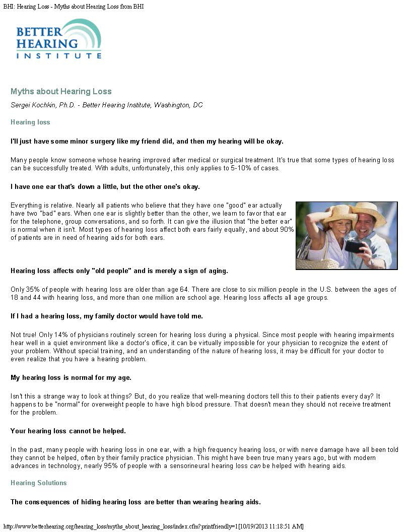 ARTICLE COURTESY OF BETTER HEARING INSTITUTE
